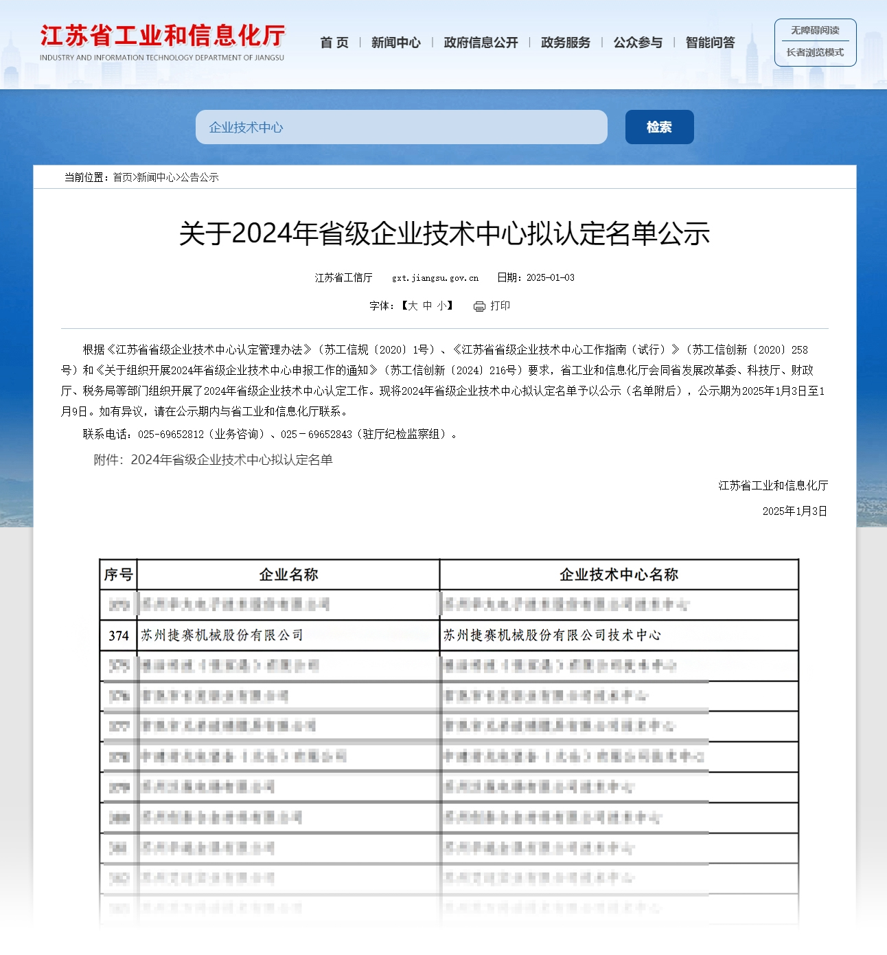 新年伊始,江蘇省工業(yè)和信息化廳對(duì)2024年省級(jí)企業(yè)技術(shù)中心擬認(rèn)定名單進(jìn)行公示。蘇州捷賽憑借在技術(shù)創(chuàng)新與產(chǎn)品研發(fā)方面的卓越表現(xiàn)成功通過江蘇省企業(yè)技術(shù)中心認(rèn)定,斬獲省級(jí)殊榮!