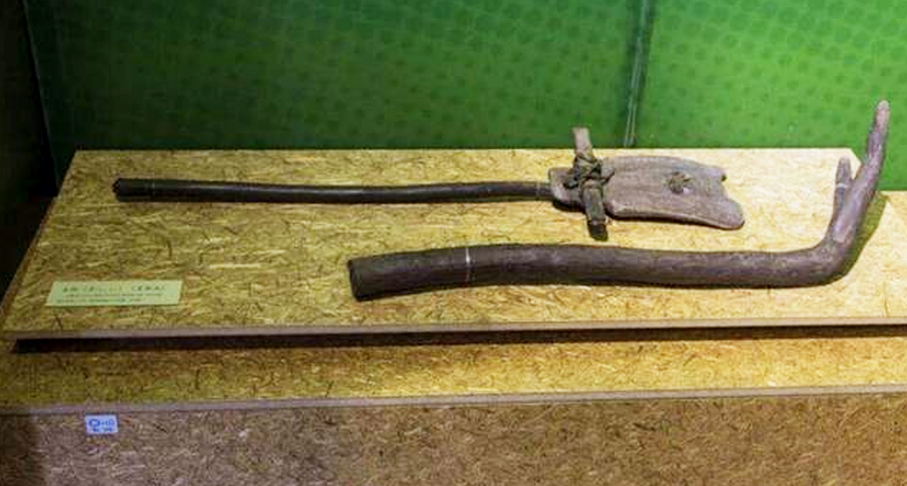 耒是從采集經(jīng)濟(jì)時(shí)期挖掘植物的尖木棍發(fā)展而來(lái)的,也是最原始的掘土工具;耜則是耒的進(jìn)一步發(fā)展,產(chǎn)生于耒的改良,把耒齒尖刃改為平葉式板刃,翻土功能顯著增強(qiáng)。